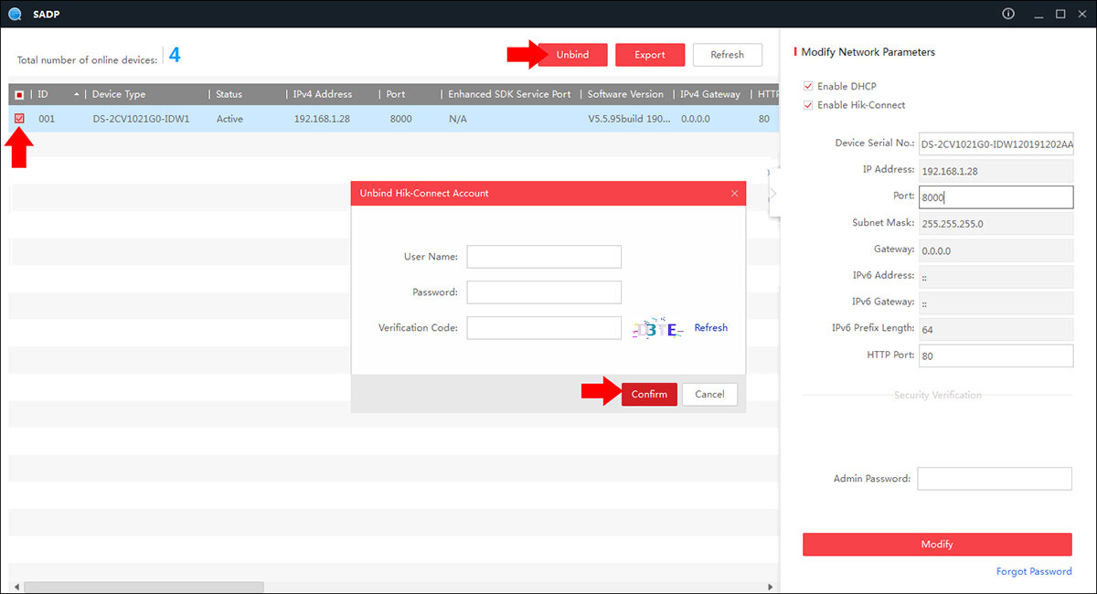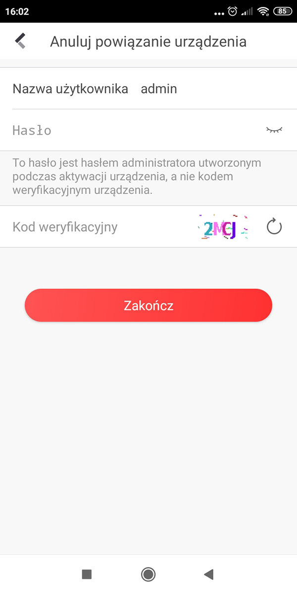 V novom okne "Unbind Hik-connect Account" zadajte: