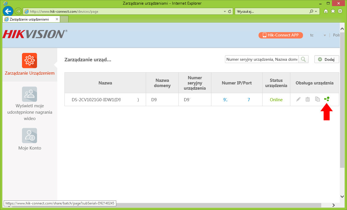 Zdieľanie zobrazenia zariadenia prostredníctvom platformy Hik-Connect na adrese www.hik-connect.com