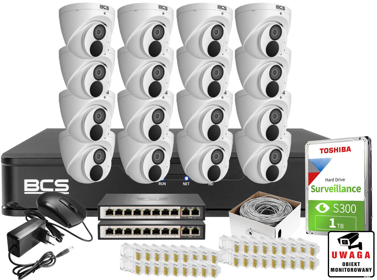 Monitorovací sada pre materskú školu, školu BCS Point Rekordér IP + 16x BCS-P-EIP24FSR3-Ai1 + Príslušenstvo