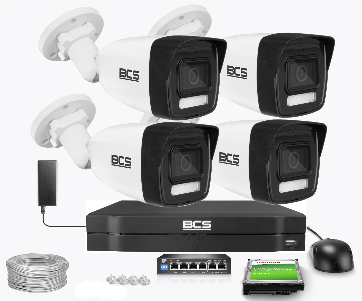 Zestaw do monitroingu BCS View 4x BCS-V-TIP14FSR3L3(2), 4Mpx, WDR 120dB, WhiteLight 30m