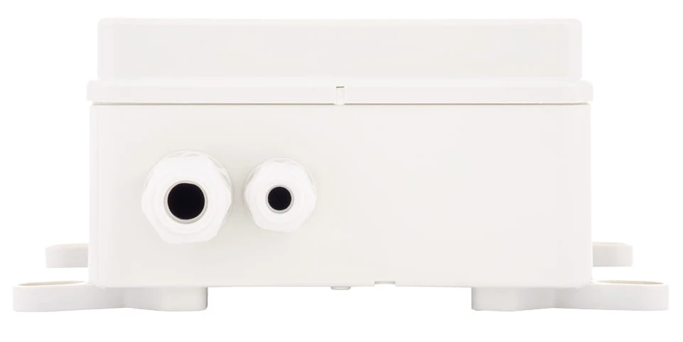 - Obudowa IP56 ABOX-S1 – -25…+50°C, 110 × 150 × 70 mm, 0,42 kg, tworzywo szare, dławnice 1×M16 + 1×M20, montaż naścienny na uchwytach